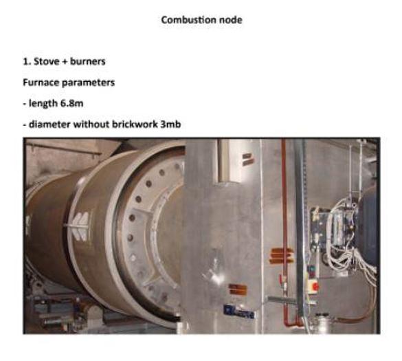 - Dimensioni geometriche fondamentali del tamburo rotante: diametro esterno Dw – 3m - Lunghezza L – 7,9 mt - L/D 2.6 - Portata dei gas di scarico nel forno - Usp. – 1,85 m/sec. Tempo minimo di permanenza dei gas di scarico nel tamburo rotante - 4,2 sec. - Numero di giri del forno - 0,125 – 0,25 giri/min.