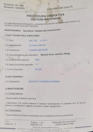 - Unità di controllo Fanuc Serie 18-T e ha 3 assi.