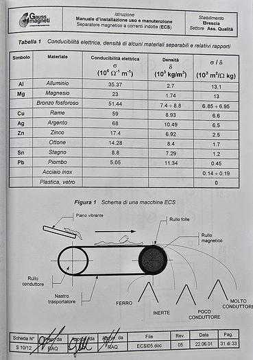 2008 Separatore magnetico Gauss Magneti ECS 1300 L - Magnetic separator